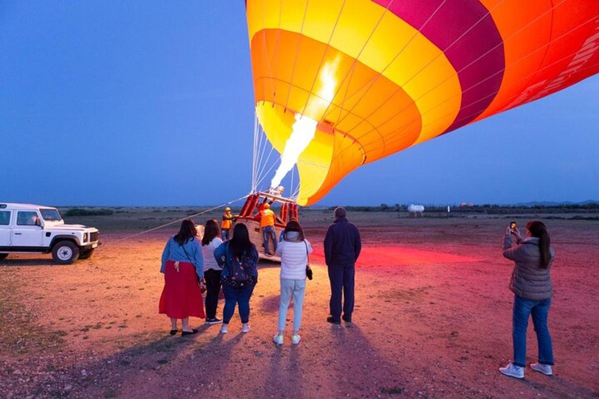 Préparez-vous pour une aventure aérienne inoubliable avec un vol en montgolfière au lever du soleil au-dessus de la Palmeraie. Tôt le matin, notre équipe viendra vous chercher pour vous conduire au site de décollage, où vous serez accueillis avec un thé à la menthe chaud. Après un briefing de sécurité, montez à bord de la nacelle et laissez-vous emporter en douceur vers les cieux.